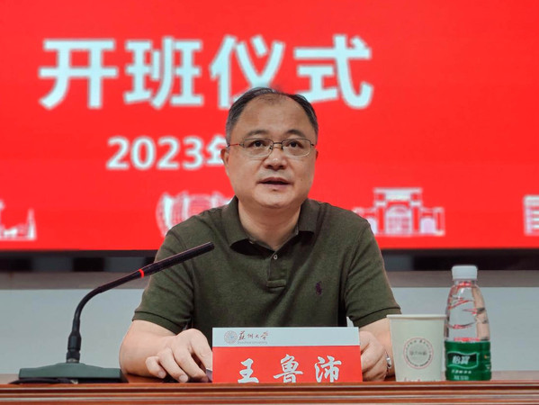 王鲁沛代表苏州大学对各位学员表示热烈欢迎。他从长度、宽度和高度三个方面向学员们介绍了苏州大学的办学历史、学科专业和发展水平,并结合培训主题阐述了苏州大学在乡村振兴培训方面的优质平台和优秀师资。他表示,我校将聚焦培训需求,全力提供服务保障,希望学员们能够通过此次培训进一步提升思想理论素养,提升乡村治理和服务水平,提升解决实际问题、干事创业的能力。最后,他预祝此次培训取得圆满成功。