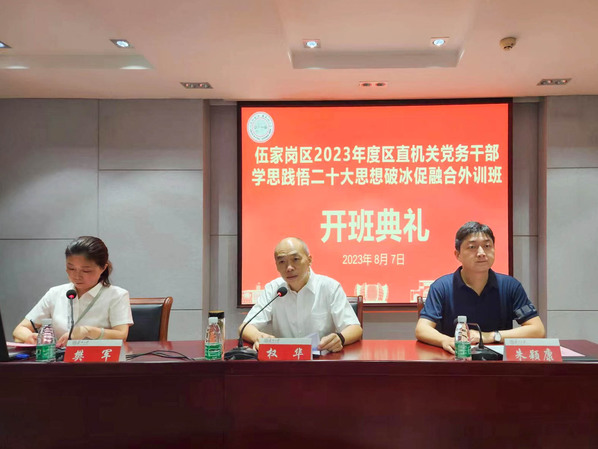8月7日,由苏州大学承办的伍家岗区2023年度区直机关党务干部“学思践悟二十大 思想破冰促融合”外训班在我校顺利开班。来自东莞市中级人民法院的56位领导干部参加了本次培训。宜昌市伍家岗区委办督察专员权华,苏州大学管理培训学院副院长朱颖康出席了开班典礼。
