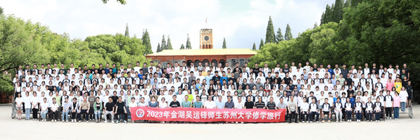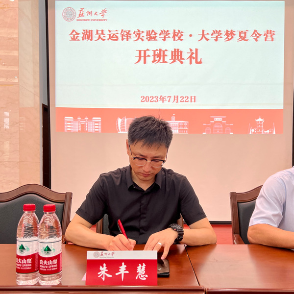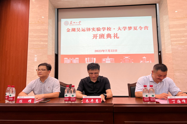 经过精心筹备,7月22日下午,由苏州大学承办的“苏州大学-金湖吴运铎实验学校·大学梦夏令营培训班”在我校顺利开班。来自金湖吴运铎实验学校的318名学员参加了本次培训。金湖吴运铎实验学校校长朱丰慧,苏州大学体育学院党委副书记丁海峰,苏州大学继续教育学院院长助理、培训部主任陈耀出席了开班典礼。