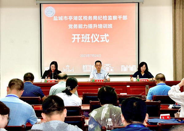 7月23日至28日,由苏州大学承办的盐城市亭湖区税务局纪检监察干部党务能力提升培训班在我校顺利举办,来自盐城市亭湖区税务局各股室的约50名业务骨干参加了此次培训。开班仪式于7月24日上午举行,盐城市亭湖区税务局党委委员、副局长、机关党委书记戴启庚,苏州大学管理培训学院副院长黄艳凤同志出席。