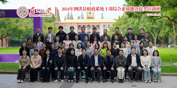 11月10日,2024年泗洪县财政系统干部综合素质能力提升培训班在我校顺利开班。来自宿迁市泗洪县财政系统的46名领导干部参加了本次培训。泗洪县财政局社保科科长胡修贵,苏州大学管理培训学院副院长赵承良出席了开班仪式。