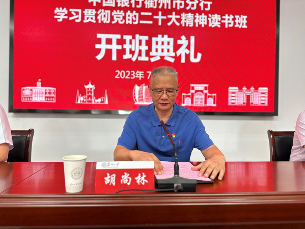 胡尚林作开班动员讲话。他表示,本次读书班要以习近平新时代中国特色社会主义思想为指导,从中感悟思想伟力、汲取真理力量、补足精神之钙、筑牢思想之魂,并扎实开展好主题教育工作。对此,他提出三点意见:一是勤学善思,把读书班办成固本培元的研究班;二是明辨笃行,把读书班办成知行合一的实践班;三是互学互促,把读书班办成取长补短的交流班。最后,他对学员在苏培训期间的纪律做出严格规定,以确保培训任务顺利、安全地完成,同时树立起衢州金融人的良好风貌。