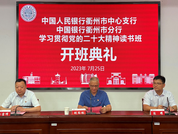 开班典礼于7月25日举行,中国人民银行衢州市中心支行党委委员、副行长胡尚林,中国银行衢州市分行党委委员、副行长余雪峰,苏州大学继续教育学院院长助理、培训部主任陈耀出席。