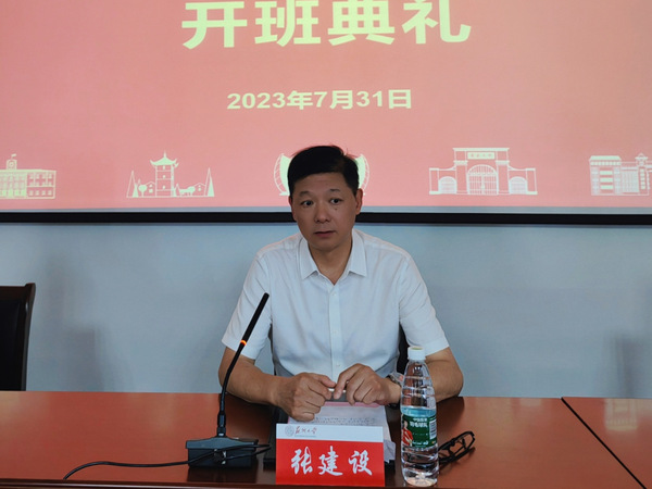 张建设作开班动员讲话。对于本次培训的组织与安排,他对苏州大学表示感谢。他指出,本次骨干教师高级研修班是提高教师综合素质的重要途径。他强调,学员在培训期间要服从组织管理,珍惜这次难得的学习机会,严格按照培训要求,遵守培训纪律;要将教师身份转化为学员身份,端正学习态度,确保培训班办出成效,学员学有所获。他希望学员们以此次培训为契机,融合新理念、汇聚新思路,收获新本领。
