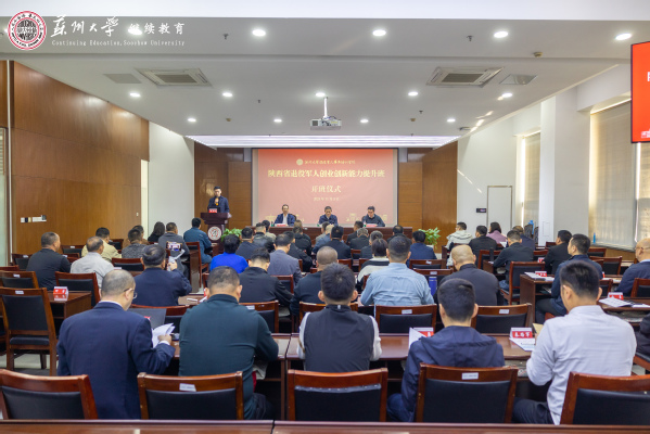 11月5日,陕西省退役军人创业创新能力提升班在我校顺利开班。陕西省退役军人事务厅党组成员、副厅长高巨会,江苏省退役军人事务厅二级巡视员、就业创业处处长吕超豪,苏州大学继续教育学院院长、退役军人事务培训学院院长缪世林出席了开班仪式。