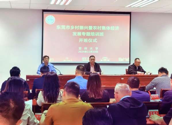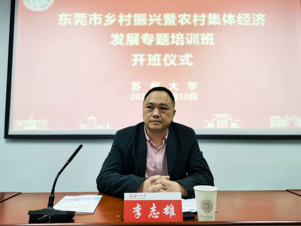 11月10日,东莞市乡村振兴暨农村集体经济发展专题培训班在我校顺利开班。来自东莞市农业农村局、乡村振兴促进会、镇街、村(社区)的100位学员参加了本次培训。东莞市农业农村局三级调研员李志雄,东莞市农业农村局四级调研员欧达强,苏州大学乡村振兴培训学院副院长宋军出席了开班仪式。