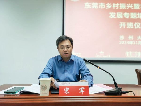开班仪式上,宋军对全体学员的到来表示欢迎,并向他们介绍了古城苏州的悠久历史及经济发展现状。他从“长、宽、高”三个角度,详细介绍了苏州大学从师范教育的文脉坚守到综合性大学的战略转型与回归,实现多校合并跨越发展的历程。他表示,我校将充分发挥干部教育培训的特色优势,希望各位学员通过此次培训,能够汲取新知识、新经验。最后,他预祝本次培训班圆满成功,全体学员生活愉快。