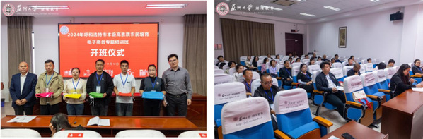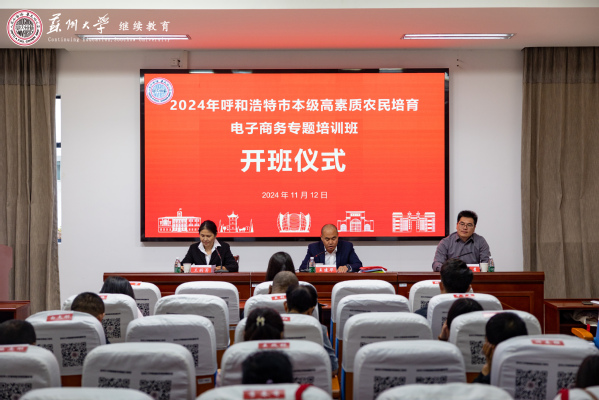 11月12日下午,2024年呼和浩特市本级高素质农民培育(电子商务专题)培训班在我校顺利开班。来自呼和浩特各旗县区的35名高素质农民参加了此次培训。呼和浩特市农牧技术推广中心主任王建华, 苏州大学乡村振兴培训学院副院长陈星出席了开班仪式。