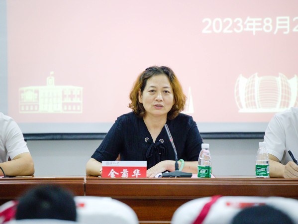 金菊华首先对全体学员的到来表示欢迎,并向学员们介绍了苏州大学的百年发展历史、办学优势和学科建设成果,包括在人才培训方面的专业特色和优秀师资。她表示,我校将努力当好东道主,全力为此次培训提供服务保障,希望学员们能够在培训期间认真学习、积极参与各项课程,将培训成果转化为行之有效的工作方法,灵活应用于工作实践,共同推动乐清市工会的发展。最后,她预祝学员们在苏期间学习愉快,学有所成。