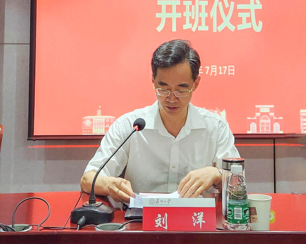 刘洋作开班动员讲话。他对苏州大学的精心组织与筹备表示感谢,并对学员提出三点建议与要求:一是要端正态度,珍惜培训机会,做到静下心来学,沉下心来思,潜下心来悟,全身心投入到培训之中;二是要学以致用,推动工作进程,致力做到对党建责任心中有数,对党建工作胸中有策,对党建任务行动有力;三是要遵守纪律,树立良好形象,发挥党员的先锋模范作用,自觉遵守培训班纪律,严格遵守课堂秩序。最后,他希望学员们将此次培训作为发展新起点,做到在学中干、在干中学,努力为新时代遂宁高质量发展作出更大贡献。