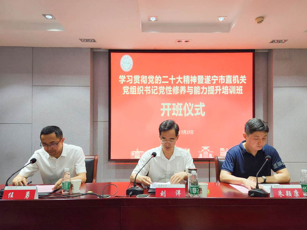 7月17日,由苏州大学承办的“学习贯彻党的二十大精神暨遂宁市直机关党组织书记党性修养与能力提升培训班”在我校顺利开班。来自四川省遂宁市直机关党组织的50余名学员参加了此次培训。遂宁市直机关工委副书记刘洋,遂宁市直机关工委副书记、纪工委书记任勇,苏州大学管理培训学院副院长朱颖康出席了开班仪式。