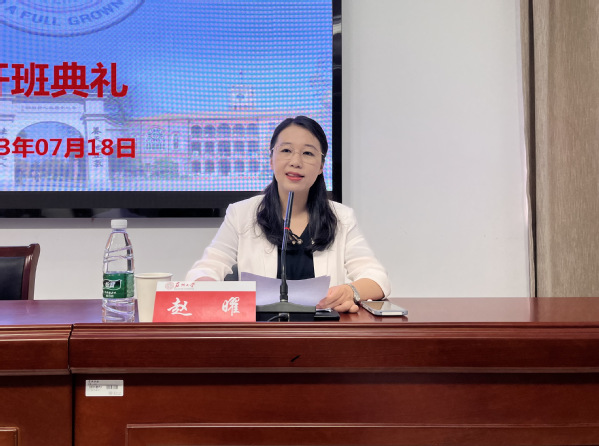 赵曜首先代表苏州大学对参加本次培训的学员们表示热烈欢迎,她从长度、宽度、高度、深度、温度“五个维度”,向各位学员介绍了苏州大学的发展历程,包括在学科建设、人才培养、服务社会等方面所取得的优秀成果,以及在管理培训等方面的办学优势。她表示,此次培训旨在提升第二初级中学教师们的综合能力,课程设置理论结合实践,还邀请了教学领域的专家教授前来授课。希望大家通过培训能够丰富专业知识,对提升综合能力有所帮助,相信大家有所收获、不虚此行。她也希望大家在培训之余,到苏州大学美丽的校园里、到苏州的街巷逛逛,感受苏州及苏大独特的美。最后,她预祝本次培训取得圆满成功。