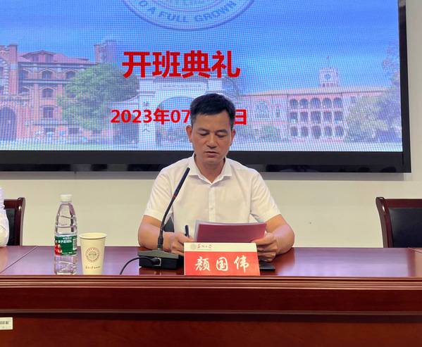 颜国伟作开班动员。他首先对苏州大学为此次培训的精心组织与安排表示感谢。他就此次培训对学员们提出了三点要求:一、转变角色,积极学习;二、积极交流,学以致用;三、严守纪律,保持良好作风。培训是短暂的,学习是终身的。他希望大家把握好这次难得的学习机会,以良好的精神状态,投入到这次培训,务求学有所得、学有所获。要注重联系“育人”的思考,注重联系“教学”的思考,积极主动与授课老师交流,讨论环节畅所欲言。根据培训班的总体要求和安排,多听、多看、多想、多悟,将学到的学问运用到今后的实际工作中,不断提升自身的业务素养和工作水平。