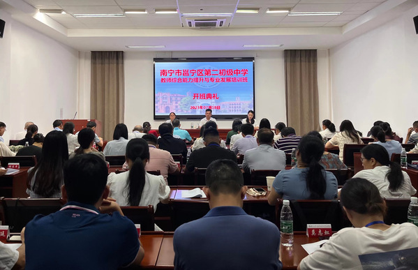 七月骄阳似火,蓄能热火朝天。7月19日,由苏州大学承办的南宁市邕宁区第二初级中学教师综合能力提升与专业发展培训班在我校顺利开班。来自南宁市邕宁区第二初级中学的69名学校领导和骨干教师参加了此次培训。南宁市邕宁区第二初级中学党委书记颜国伟,苏州大学管理培训学院副院长赵曜出席了开班仪式。