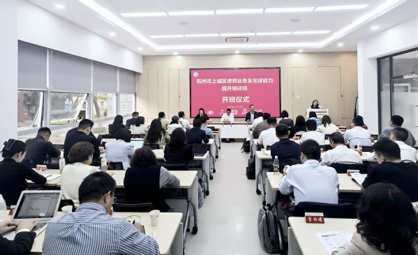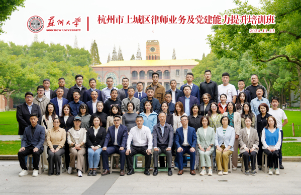 为深入学习贯彻中央关于进一步加强法治建设的决策部署,推动上城区律师行业的发展。11月14日,杭州市上城区律师业务及党建能力提升培训班在我校顺利开班。来自杭州市上城区的53名法律工作者参加了此次培训。杭州市上城区司法局党委委员、副局长、区律师行业党委书记高宏,上城区司法局律工科科长、区律师行业党委副书记章寅莹,苏州大学管理培训学院副院长沈晔出席了开班仪式。