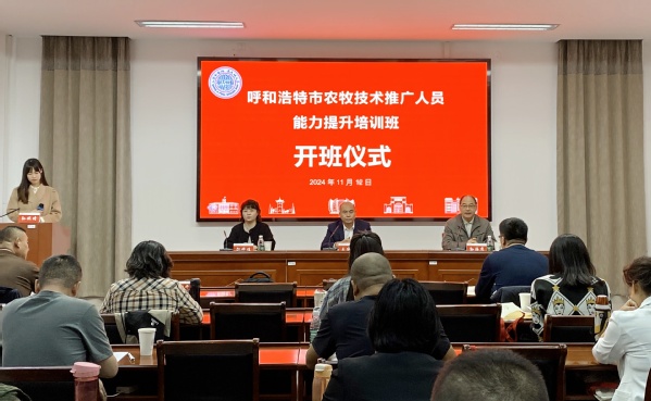 北雁南飞,立冬已至。11月12日,呼和浩特市农牧技术推广人员能力提升培训班在我校顺利开班,来自内蒙古呼和浩特市农牧局、农牧技术推广中心以及各区县的骨干人员共30人参加了本次培训。呼和浩特市农牧技术推广中心主任王建华,市农牧技术推广中心副主任赵妤佳,苏州大学管理培训学院副院长孙海鹰出席了开班仪式,仪式由苏州大学管理培训学院专职班主任孙婉晴主持。