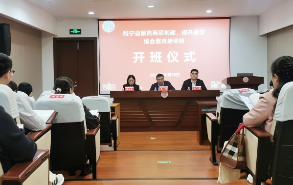 10月27日至11月1日,睢宁县聚焦两项创建,提升督学综合素养培训班在我校顺利举办,来自睢宁县教育系统的64名责任督学参加了本次培训。10月28日,培训班举行了开班仪式。睢宁县教育局副局长岑伟、苏州大学管理培训学院副院长陈星出席了开班仪式。
