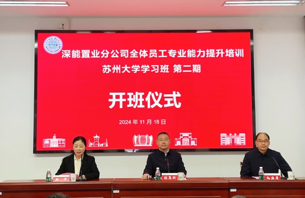 为了全面提升员工专业技能、团队协作能力和创新能力,为公司业务发展和创新提供支持。11月18日上午,深能置业分公司全体员工专业能力提升培训苏州大学学习班(第二期)在我校顺利开班。来自深能置业分公司的22名员工参加了本次培训。深能置业分公司副总经理张再昕,苏州大学管理培训学院副院长孙海鹰出席了开班仪式。