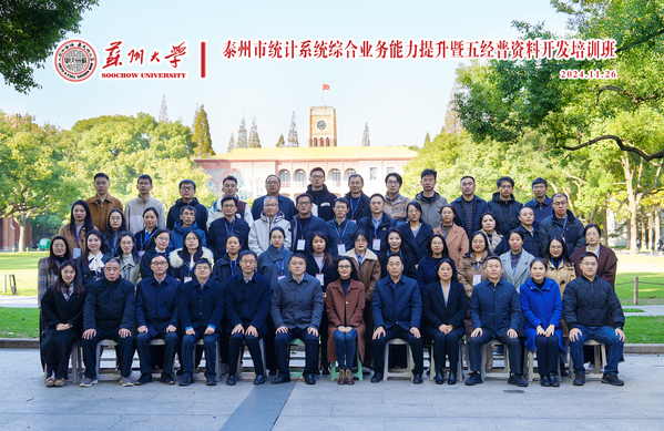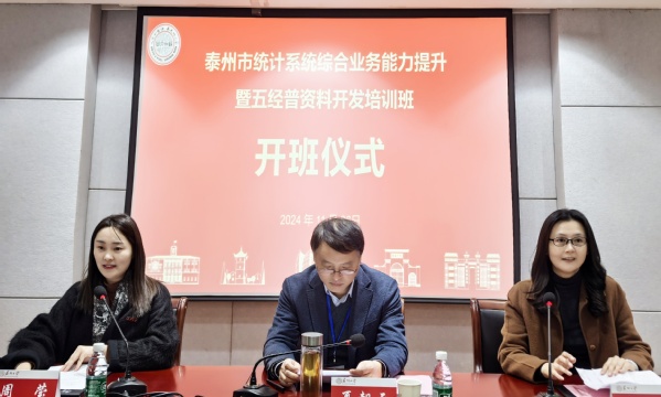 为推动统计事业高质量发展,建设高素质统计干部队伍,做好五经普后续工作任务。11月26日下午,由苏州大学承办、泰州市统计局主办的“泰州市统计系统综合业务能力提升暨五经普资料开发培训班”在我校顺利开班。来自泰州市市、区统计局领导和全市统计系统业务骨干及年轻干部代表共50人参加了此次培训。 泰州市统计局党组书记、局长夏朝云,苏州大学管理培训学院副院长沈黔出席了开班仪式。开班仪式由苏州大学管理培训学院培训三中心副主任周莹主持。