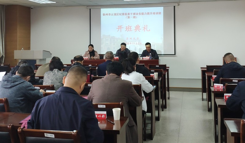 11月2日上午,徐州市云龙区纪委监委干部业务能力提升培训班(第一期)在我校顺利开班。徐州市云龙区纪委常委、区监委委员齐浩和苏州大学金螳螂建筑学院副院长、苏州大学干部培训学院副院长王杰祥参加开班典礼并分别讲话,开班典礼由班主任李艳玲老师主持,来自徐州市云龙区纪委监委的30多名干部参加了开班仪式。