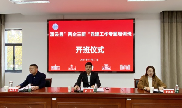 曹勇作开班动员讲话。他希望大家提高站位、打开思路、掌握主动,结合自家党建现状,努力在“两企三新”党建路径上找准突破点,在今后的工作中聚力打造特色品牌和示范站点,为灌云县“两企三新”各项工作作出新贡献,并对学员们提出了三点要求,第一要通过学习,努力练就推动高质量发展的过硬本领。第二要牢固树立敢想敢干敢担当的创新思维。第三要始终端正从严从实入脑入心的学习态度。最后,他预祝本次培训圆满完成。