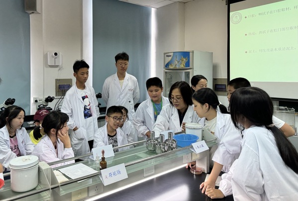 在夏令营期间,学员们被分为5个小组,在学习过程中,既有小组内部的密切协作,也有各组之间的良性竞争。无论是制作标本,还是进行显微镜下的细胞观察,每个小组成员都发挥各自的优势,互相支持,共同完成任务,学习氛围友好而浓厚。