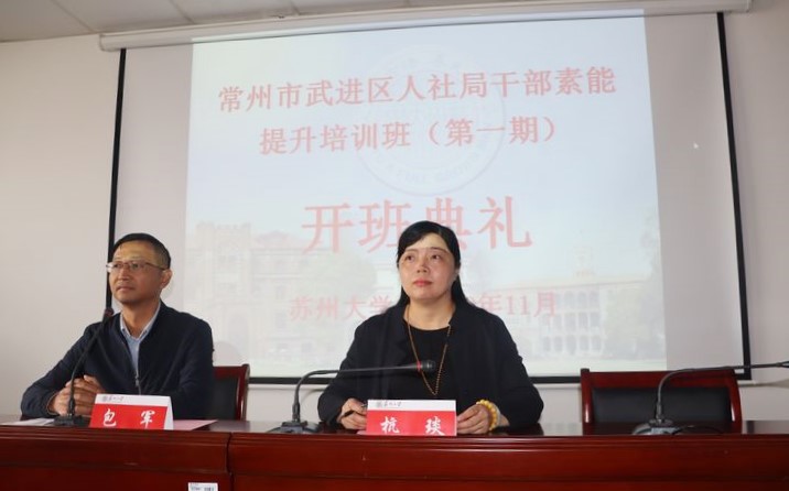 11月17日上午,常州市武进区人社系统干部职工综合能力素质提升培训班(第一期)在苏州大学北校区工科楼1008室正式开班,出席开班式的有常州市武进区人社局副局长杭琰,苏州大学社会学院副院长包军以及来自常州市武进区人社系统工作人员55名,开班式由包军副院长致欢迎词,培训班班主任武方主持,杭琰局长讲话并做开班动员。