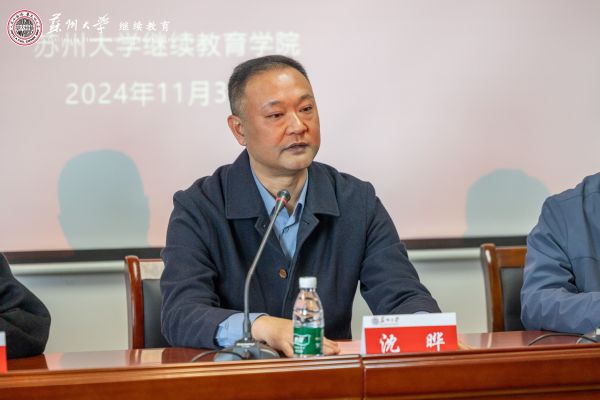 苏州大学继续教育学院副院长沈晔致欢迎辞。他首先对参加本次培训的各位学员表示热烈欢迎,并介绍了苏州大学的发展历程,重点围绕“数字技术工程师”项目介绍了我校在人才培养、社会服务等方面所取得的成绩。他表示,本次培训旨在通过系统的培训和考核,培养具备前沿技术知识和实际操作能力的数字技术工程师,推动技术创新和产业升级。最后,他预祝大家在考核中取得好成绩,顺利获得专业技术等级证书。