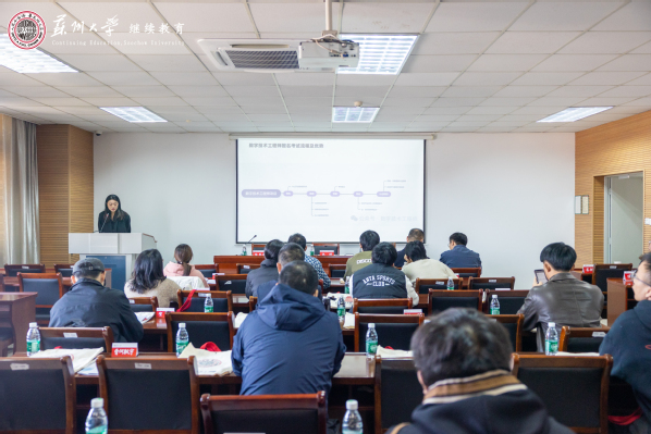 苏州大学产业人才培训学院专业技术培训中心副主任(主持工作)王倩表示,数字技术工程师培育项目是国家新一轮专业技术人才知识更新工程中的重点项目,旨在培养有良好科学素养、精于实操应用、能够解决复杂问题的高水平数字技术人才。他还强调了数字技术对生产和生活方式的深刻影响,以及党的二十大报告中提出的教育、科技、人才对现代化建设的重要性,为各位学员解读了数字技术工程师具体政策和我校举办的数字技术工程师培训项目特点。
