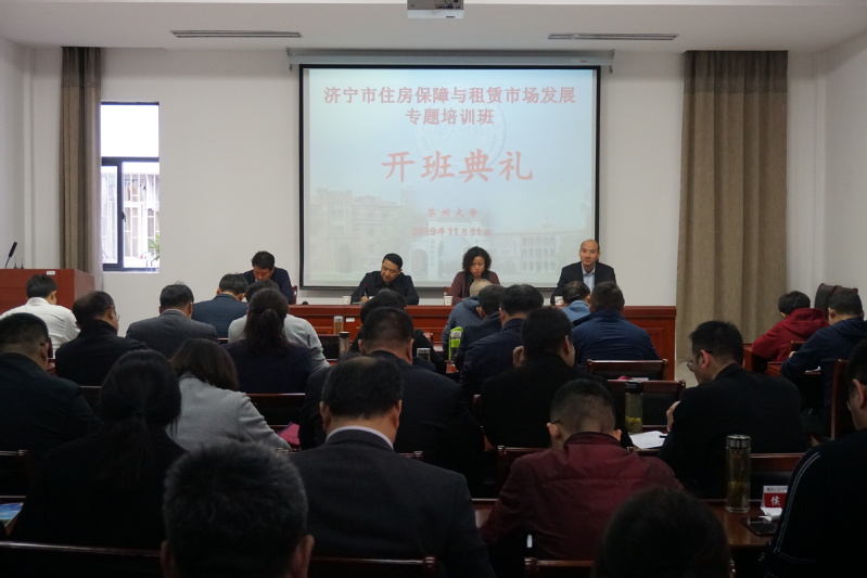 11月11日,济宁市住房保障与租赁市场发展专题培训班顺利开班。济宁市住房和城乡建设局调研员、市房产管理局局长朱勇,苏州大学金螳螂建筑学院党委书记陈国凤出席开班仪式并分别讲话,开班典礼由苏州大学金螳螂建筑学院副院长茆汉成主持,来自济宁市直及县(市、区)住房保障与房产管理部门分管负责人、业务科室负责人等60名学员出席了开班仪式。