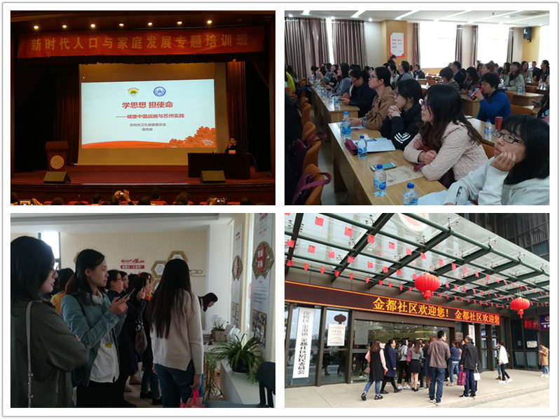 培训班是结合新形势下人口家庭工作,计划生育工作向人口家庭监测工作转型工作特点,精心举办的一期培训班,谭伟良主任讲健康中国战略与苏州实践,黄辛隐教授传授特殊家庭心理疏导与沟通技巧,陈友华教授的课程让大家进一步了解新时代中国人口形势与家庭发展目标和任务,学员们还去张家港金港镇金都社区,现场学习《注重转型,全面提供家庭健康服务》经验。