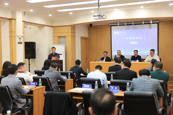 第七期高级工商管理研修班班长、中亿丰绿色建筑公司总经理浦建刚作为往届学员代表在发言中感谢苏州大学及商学院领导和老师无微不至的关心,感谢学院提供的平台让自己结识了志同道合的伙伴,认识了启迪思想的良师。他分享了自己在苏大的学习体会与校园生活,祝愿九期班学员与老师、同学进行思想的交流与理念的碰撞后,能够在苏大有新的起点、新的高度,创造新的辉煌。