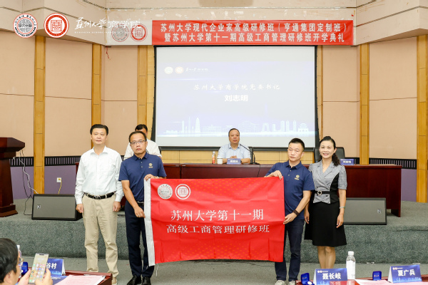 学员们在开学典礼上集体佩戴苏州大学纪念章,寓意着苏州大学精神的传承,也代表了从此刻开始成为一名苏大人。学员今后将依托苏州大学及商学院的平台,承担使命与担当,发扬新时代企业家精神,勇于拼搏进取,为实现中华民族伟大复兴的中国梦贡献自己的力量。