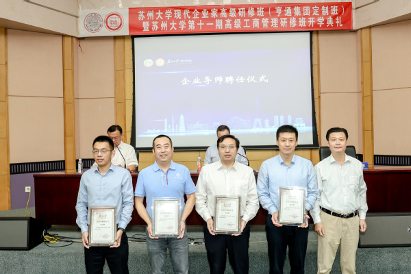 刘志明为四位苏州大学高管教育企业导师颁发聘书。他们分别是:亨通集团管理学院院长李谷村、安孚创始人/董事长孙宇光、苏州福柯思电气有限公司总经理焦伟涛、苏州工业园区元禾重元股权投资基金管理有限公司合伙人张文敏。企业导师的加入,为苏州大学高管教育注入了强大的智慧力量。