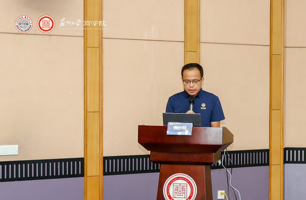 企业导师、亨通集团管理学院院长李谷村介绍了亨通集团自1991年成立以来的发展历程。李院长从年年有进步、个个有精彩、处处有留心等方面细数了亨通集团与苏州大学在人才培养、产学研等方面的深度合作。他向学员们提出了“融化、消化、转化”的学习要求,鼓励学员们以谦逊之心,以进取之志将所学所悟转化为推动企业发展的动力,为企业发展创造价值。