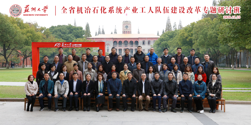 2020年 11月23日下午,全省机冶石化系统产业工人队伍建设改革专题研讨班在我校顺利开班。江苏省总工会副主席井良强、工人日报驻江苏记者站站长王伟、苏州大学计算机科学与技术学院党委书记杨礼富参加开班典礼并分别讲话,开班典礼由江苏省机冶石化工会副主任李春艳主持。