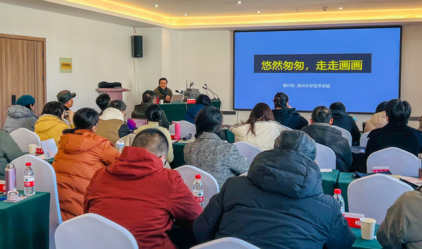 12月27日上午,我校承办的省级培训项目“2021年江苏省高校师范专业美术骨干教师风景写生能力提升培训班”在苏州甪直美术写生基地开班。我校艺术学院院长姜竹松出席开班典礼。姜院长对参训的30名美术骨干教师表示热烈欢迎,他简要介绍了苏州大学艺术学院的办学历程以及办学特色和优势,阐述了实施省级培训项目的重要意义。开班由艺术学院培训中心主任王缘主持。