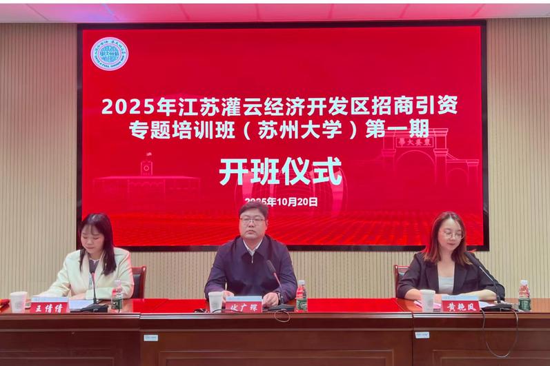 10月20日,2025年江苏灌云经济开发区招商引资专题培训班(苏州大学)第一期在我校顺利举办,来自江苏灌云经济开发区的39名党政干部参与此次培训。江苏灌云经济开发区党工委副书记、管委会主任伏广琛,苏州大学管理培训学院副院长黄艳凤出席开班仪式。