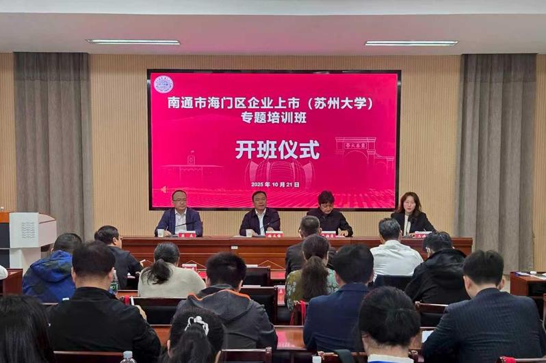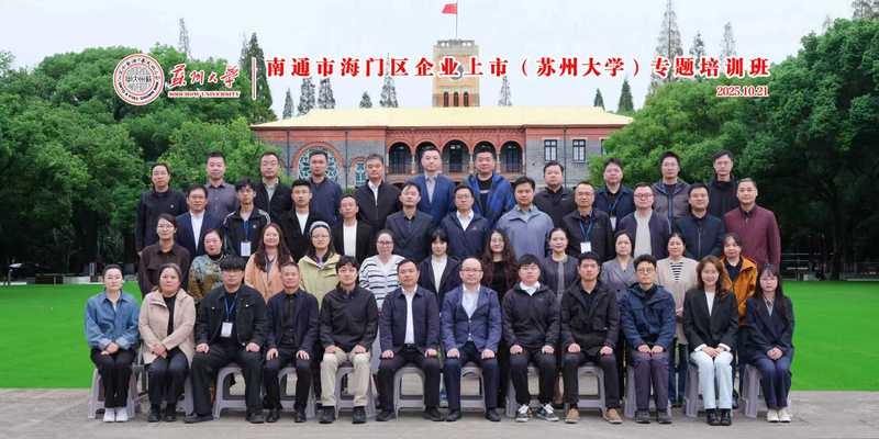 为海门经济社会高质量发展打造新引擎、增创新优势,推动企业借助资本市场快速成长。10月21日,南通市海门区企业上市(苏州大学)专题培训班在我校顺利开班。参加此次培训的是来自海门区的45名政府干部和企业家。南通市海门区委常委、常务副区长张文锦,南通市海门区政府办党组成员、区政府发展咨询中心主任周杰,苏州大学管理培训学院副院长朱颖康出席开班仪式。