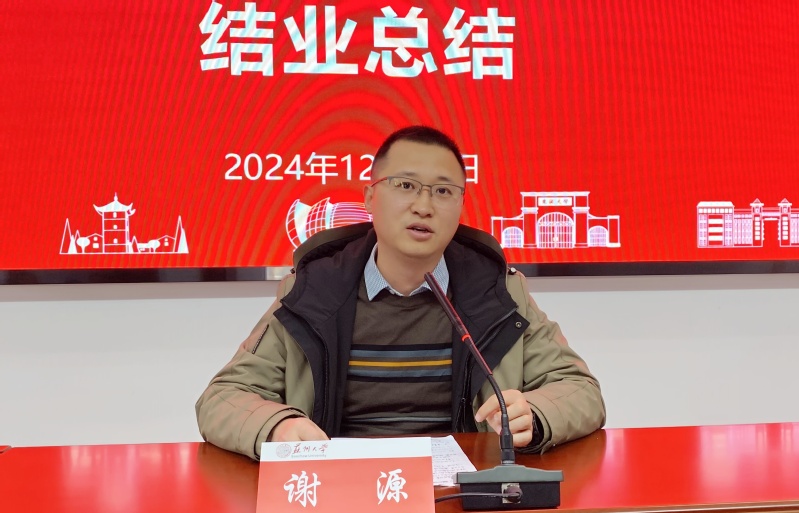 在结业仪式上,学员们通过观看视频对本次培训进行了整体回顾。绵阳科技城新区党群工作部副部长、本次培训班的班长谢源做了结训总结。首先感谢绵阳科技城新区给予我们这次学习的机会,感谢苏州大学精心的课程与现场教学设置、周到细心的服务。感谢各位学员在培训期间的配合与努力,让本次培训班既温暖又愉快,既充实又轻松。