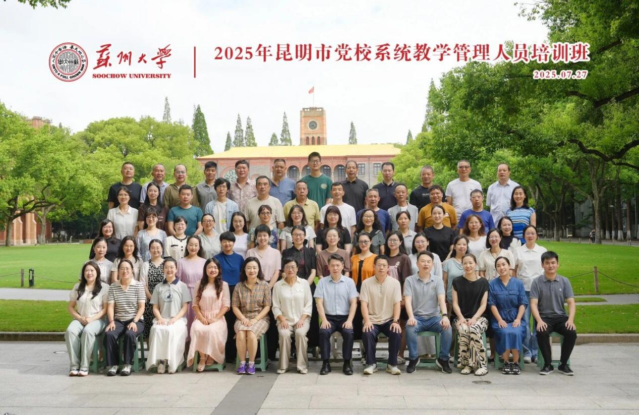 为了深入学习贯彻习近平总书记关于党校工作的重要论述,聚焦新时代干部教育新要求,提升教学管理队伍的专业能力和履职水平,7月27日,由苏州大学承办的“2025年昆明市党校系统教学管理人员培训班”在我校顺利开班。市委党校、十四各县(市、区)委党校、磨憨镇党校教学管理人员和市委党校挂钩联系村党务干部60人参加了本期培训班。中共昆明市委党校副校长晋玉芬,苏州大学管理培训学院副院长沈勤出席了开班仪式。