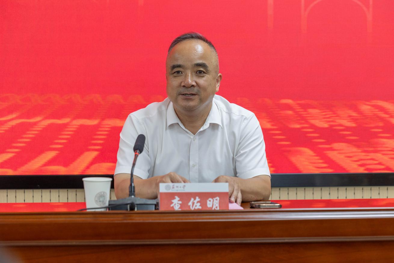 查佐明致欢迎辞。他首先对前来参训的学员表示热烈欢迎,并用“五个度”介绍了苏州大学的历史发展,包括我校在学科建设、干部培训、课程研发等方面的丰富经验。他指出,高校党务和纪检工作是新时代党的建设的重要组成部分,干部的能力素质直接关系到党组织战斗力的发挥。他希望各位学员珍惜此次培训机会,静心学习、深入思考、积极交流,切实提升政治判断力、政治领悟力、政治执行力,将学习成果转化为推动实际工作的强大动力。
