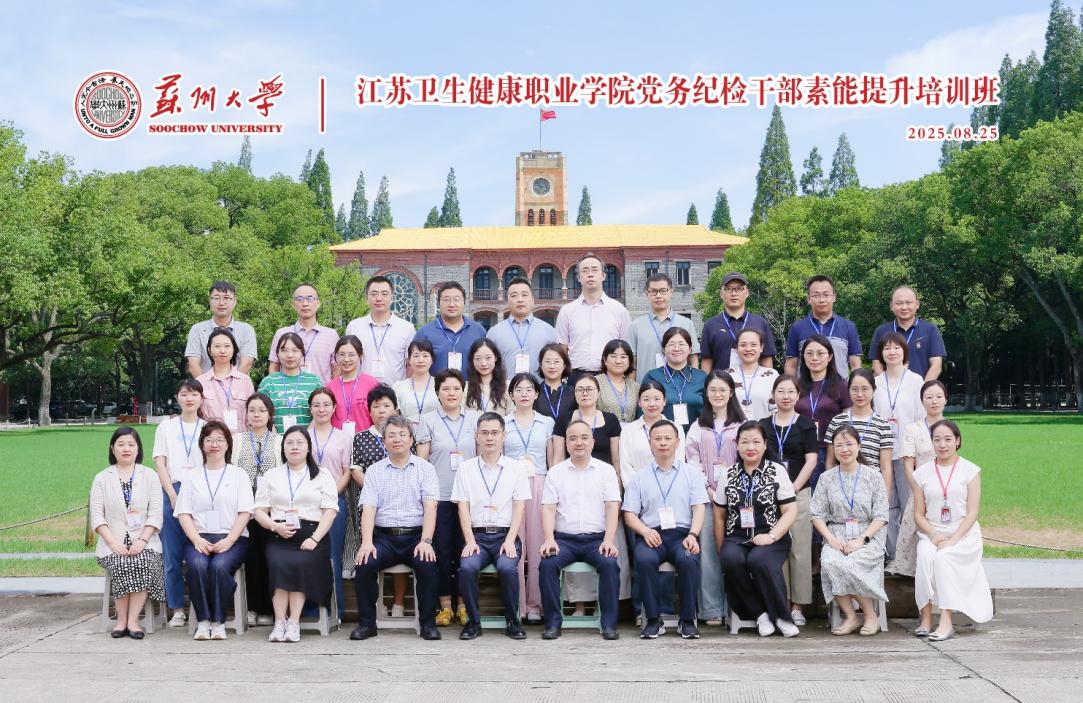 8月25日,江苏卫生健康职业学院党务纪检干部素能提升培训班和江苏卫生健康职业学院年轻干部素能提升培训班在我校顺利开班,来自江苏卫生健康职业学院的六十余名学员参加了此次培训。江苏卫生健康职业学院党委书记赵胜忠,苏州大学党委常委、副校长查佐明出席了开班仪式,仪式由苏州大学苏州医学院副院长宋军主持。