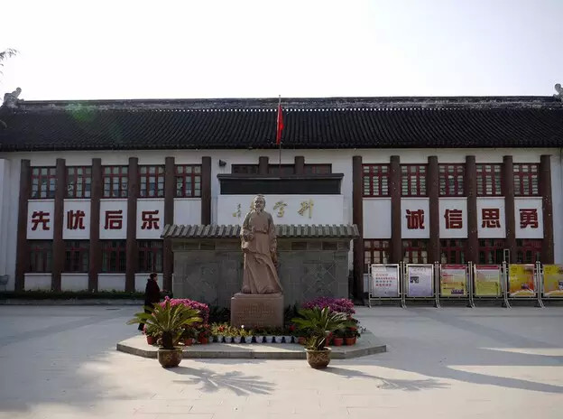 宋仁宗景祐二年(公元1035年),范仲淹捐出宅地,奏准皇帝后建造府学,并延聘当时颇具声望的教育家胡瑗担任教授,实施“分斋”教学,一时名师汇聚,他们的言传身教奠定了府学优良的校风。府学于是声名鹊起,为众目所瞩,所谓“劝天下之学,育天下之才”,开吴下风气之先。从此,苏州有了学校,苏州中学开始了“千年府学”的历史。