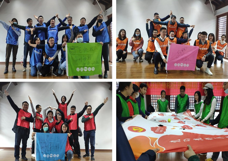 同时又开展团队拓展活动,在活动中,每组都有一个响亮的名字--我们是富有朝气和活力的人社团队;团队展示的是队形,体现的是默契、凝聚的是力量;喊出的是队号,展示的是勇气、表达的是决心。