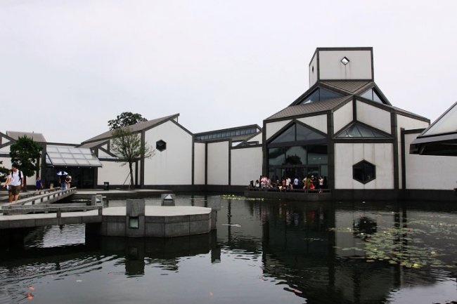 位于苏州市东北街的苏州博物馆,这座投资达3.39亿元的新馆建筑和相伴的忠王府古建筑交相辉映,总建筑面积26500平方米,其中忠王府建筑面积7500平方米,地面一层为主,局部二层;新馆建筑面积19000平方米,为充分尊重所在街区的历史风貌,博物馆新馆采用地下一层,地面也是以一层为主,主体建筑檐口高度控制在6米之内;中央大厅和西部展厅安排了局部二层,高度16米。“修旧如旧”的忠王府古建筑作为苏州博物馆新馆的一个组成部分,与新馆建筑珠联璧合,从而使苏州博物馆新馆成为一座集现代化馆舍建筑、古建筑与创新山水园林三位一体的综合性博物馆。