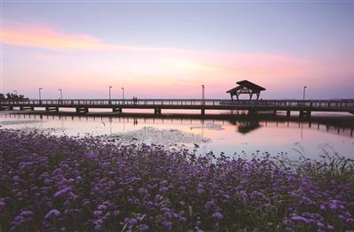 自行车道除了骑行还兼具徒步、跑步、轮滑等辅助功能,全路段配有路灯,满足夜间骑行需求,是游客慢行悠游、运动休闲、滨水观光的理想场所。
