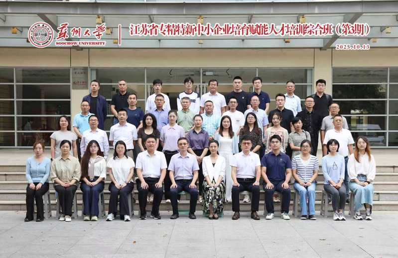 10月13日下午,江苏省专精特新中小企业培育赋能人才培训综合班(第3期)在我校顺利举办。来自江苏省的企业家代表团参加了此次培训,江苏省工信厅服务体系建设处副处长鞠庆,苏州大学管理培训学院副院长沈黔出席开班仪式。