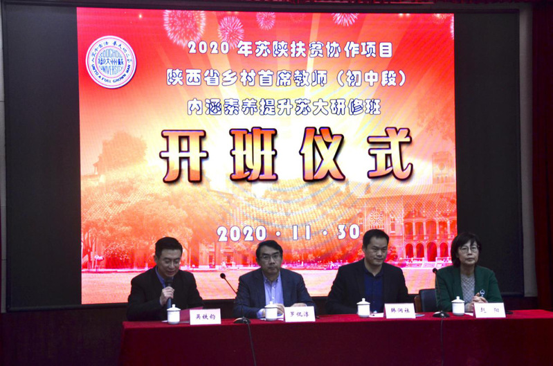 2020年11月30日上午,苏陕扶贫协作项目陕西省乡村首席教师(初中段)内涵素养提升苏州大学研修班开班典礼在我校天赐庄校区红楼学术报告厅隆重举行。来自陕西省的90位乡村首席教师将在我校进行为期20天的集中培训。