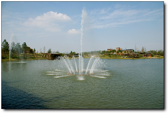 运用传统与现代造园林理念,环绕公园主环道布景,并在主要景点及主环路旁营造小游园,动静结合,虚实相间。
